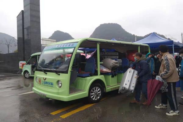 “同学,我们帮你把行李运送到宿舍区吧。”2月20日小雨中的阳朔寒意袭人,大批学生在当天开始返校,为了减少学生们的返校不便,阳朔山水交运公司派出6台新能源接驳车前往阳朔镇笫二中学,为学生提供校内接...