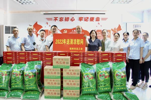 7月26日,桂林市总工会到轨道集团公交公司开展“送清凉”慰问活动,为一线驾驶员送去防暑降温的凉茶200余箱及一批绿豆、红糖,这样的关怀在酷热的盛夏为司机们带来丝丝凉意。