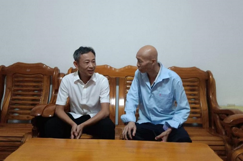 ▲王有连慰问党员李伟。陈伟民/摄