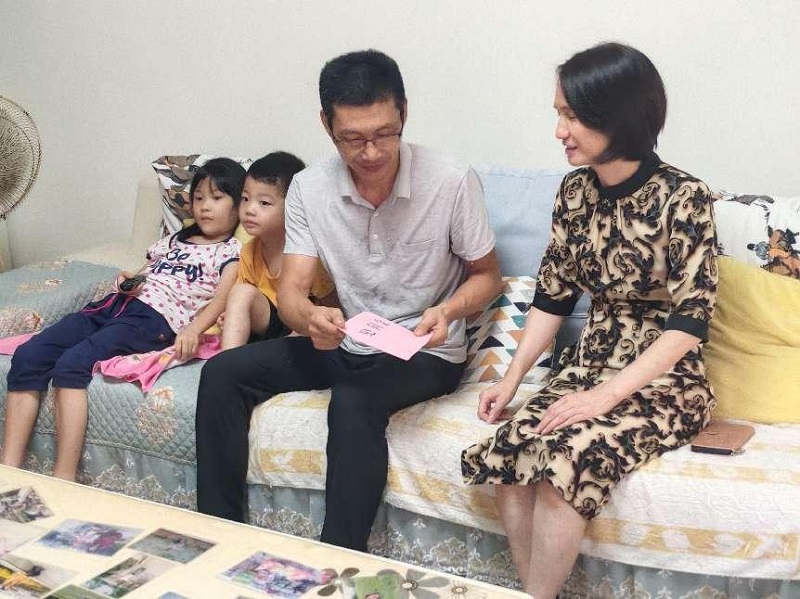 ▲吕小洁慰问党员唐杰?;瞥?摄