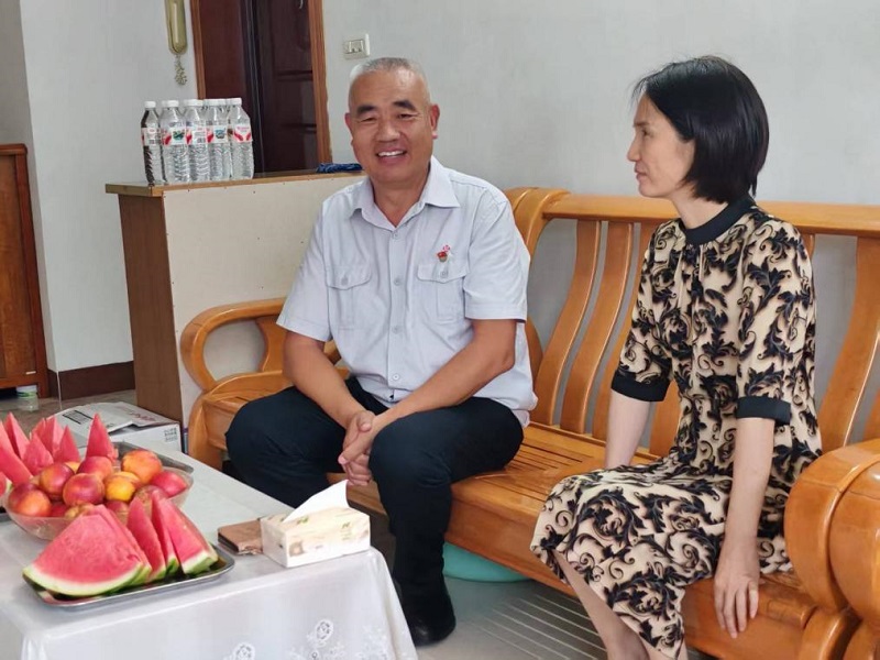 ▲于丹凤慰问党员曹春停。方静/摄