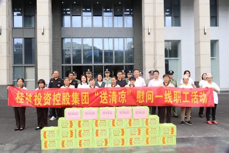 同日,为保障一线人员身心健康和安全作业,切实传递集团党委、董事会、经营班子及工会对一线职工的关心关怀,桂林投资集团党委委员、监事会主席、工会主席于丹凤,党委委员、副总裁吕小洁,市纪委监委驻桂林投资集团纪检监察组组长、党委委员、纪委书记王有连走访慰问在高温酷暑中坚守岗位、辛勤付出的广大员工。