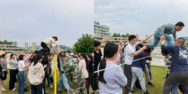 “突破自我”翻越1.5米高墙项目将活动推向高潮,队员们在120分钟内徒手协作翻越障碍,有人甘当“人梯”托举同伴,有人在墙顶奋力拉拽,大家心往一处想、劲往一处使,最终共同完成挑战,让“团队”二字的分量直抵人心。