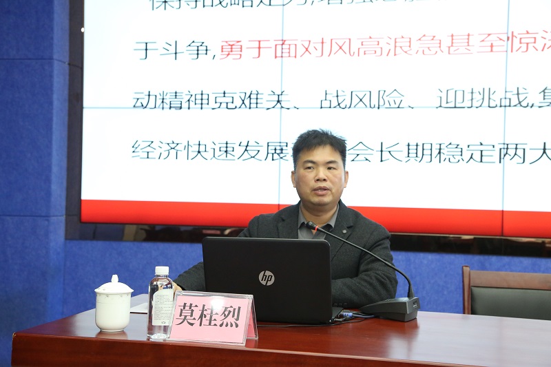 为深入学习贯彻党的二十届四中全会精神,准确把握关于推进中国式现代化的重大部署,切实把集团全体党员干部的思想和行动统一到党中央决策部署上来,1月27日,桂林投资集团召开党的二十届四中全会精神宣讲暨学习研讨会,邀请中共桂林市委党校副校长、副教授莫桂烈进行专题宣讲。集团公司领导班子,总部部室负责人及全体党员,各成员单位负责人及党员代表参加会议。