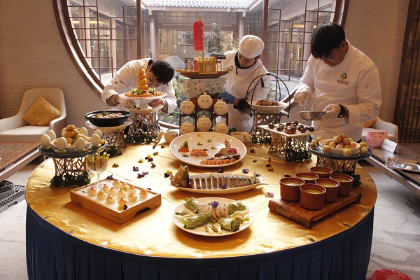 全鱼酿、鲍鱼酿、笋子酿、豆芽酿、羊肚菌酿……推广展示活动中,温德姆酒店团队与桂林旅游学院团队共同制作的“平乐十八酿宴席”,菜品造型精美、色香味俱全,一亮相就获得了现场美食专家们的一致好评。