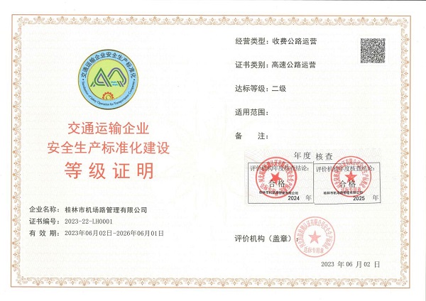 桂林投资集团机场路公司通过自治区安全生产标准化达标复评审核