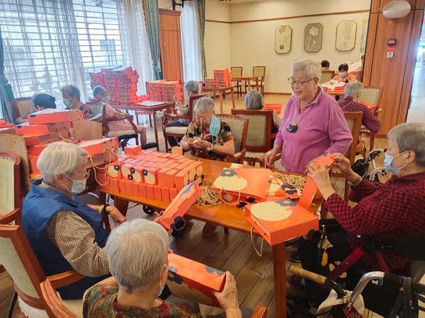 2025年第三季度康颐公司举办了长者集体生日会,公寓厨房特制低糖纯动物奶油水果蛋糕,兼顾美味与健康;寿星佩戴的“专属生日帽”由长者手工制作,既展现“老有所为”的活力,又传递互助温情。活动特邀住户吴教授作为寿星代表切分蛋糕,现场欢声笑语与《生日快乐》歌声交织,让长者感受“大家庭”的温暖。中秋期间,还组织长者使用木糖醇、海藻糖等健康食材手工制作月饼,体验传统习俗;国庆当日举办游园活动,特邀“红歌合唱”等节目,搭配国旗、灯笼等装饰,营造浓厚爱国氛围,丰富长者精神文化生活。