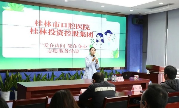 为关爱员工身体健康,普及口腔健康知识,增强口腔保健观念,11月28日,桂林投资集团邀请桂林市口腔医院到企业开展“爱在齿间 健在身心”口腔健康志愿服务活动,集团公司100余名职工参加活动。