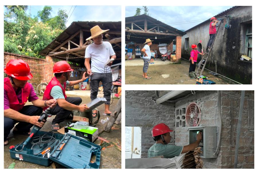 前宅村是鼎晟能源集团青狮潭水力发电公司供电服务对象。8月9日晚该村突降大雨,村民阳大哥家电表因遭受雷击造成短路停电。次日一大早,党员志愿者分两个小组进村服务,一组志愿者迅速为村民阳大哥家修复损坏线路,更换新电表,及时恢复村民家庭用电,并为村办用电企业进行电力线路、供电设备及计量装置的安全检查,及时消除用电安全隐患。