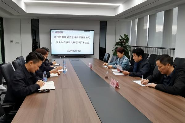 近日,由中国道路运输协会组成的考评组对鼎翔旅游安全生产标准化一级企业换证工作进行考评??计雷槎怨景踩芾淼蛋缸柿?、生产现场、作业过程等相关内容进行了全面评审后,对公司安全管理工作提出了指导性的意见和建议,考评工作顺利完成。