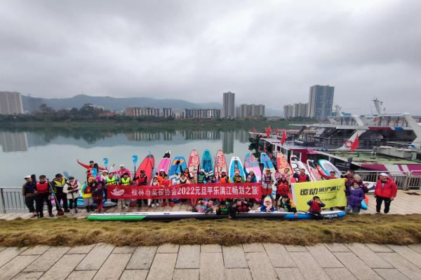 2022年新年伊始,弘润公司印山旅游码头就迎来了第一批“客人”。1月1日,桂林市桨板协会在弘润公司印山旅游码头开启2022元旦平乐漓江畅划之旅,畅划过程中尽显水上运动魅力,同时以水上运动号召?;だ旖?。