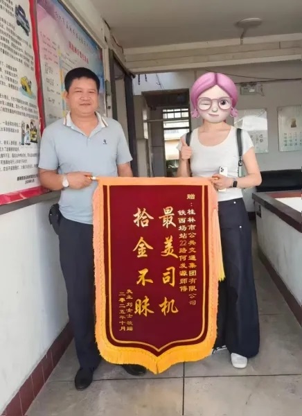 10月6日,河池乘客黄女士将装有2500元现金、身份证件及银行卡的背包遗落于6路公交车上。正当她焦急万分找到场站时,得知驾驶员莫忠迅在车辆回场后已第一时间将失物上交。这份“不耽误返程”的安心,让黄女士深受感动,专门寄来锦旗表达谢意。