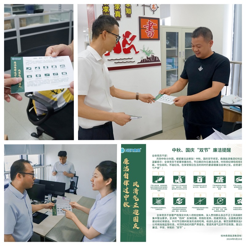 “双节”来临,廉政风险点增多,节前鼎晟能源集团创新性地推出了“廉洁提示卡”,提醒党员干部在享受假日生活的同时,仍要紧绷廉洁自律之弦,筑牢廉洁自律的坚固防线,引领节日风气回归清朗纯正。